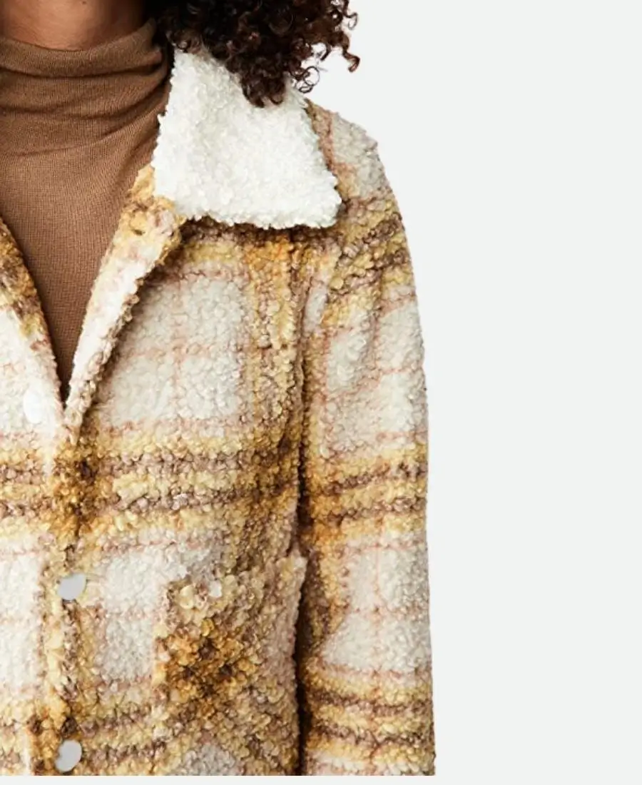 • Style: Kiara Carrera Yellow Plaid Shearling Jacket