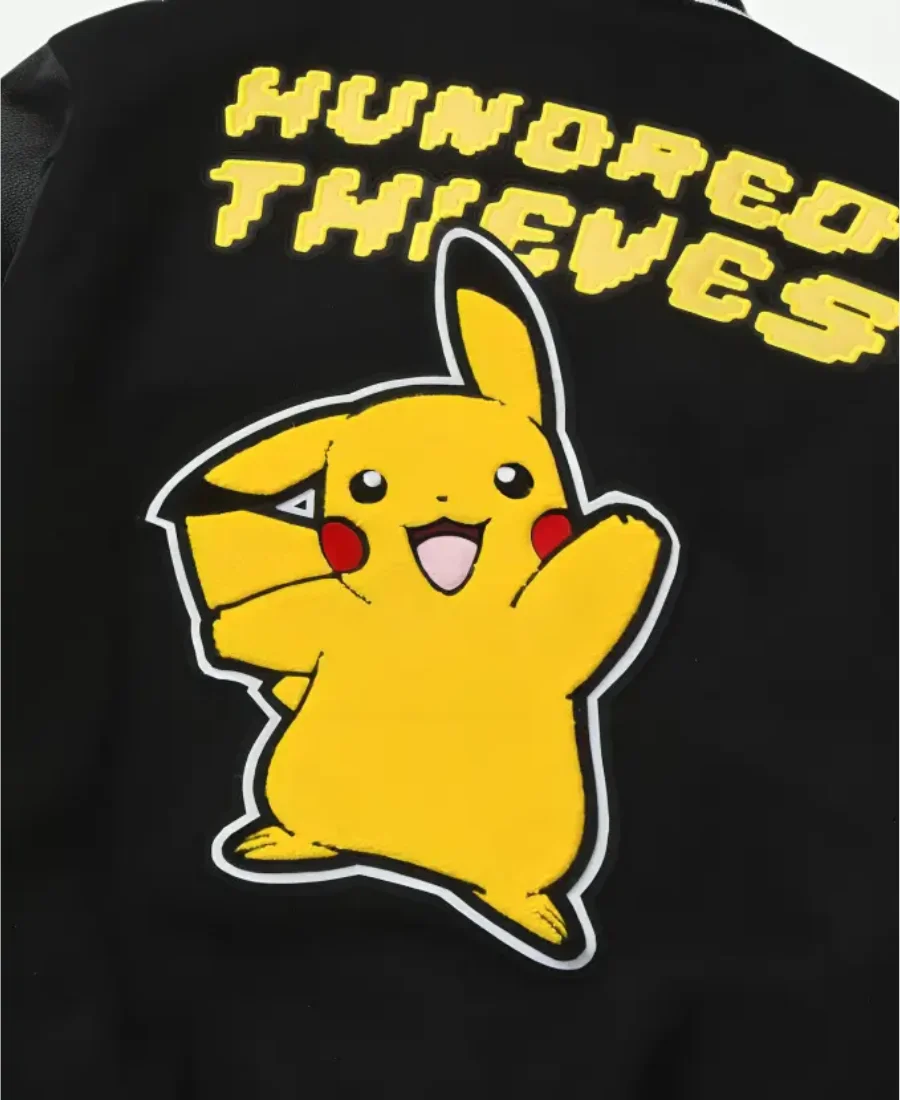 Pikachu Golden Bear 100 Thieve Black & Yellow Varsity Jacket