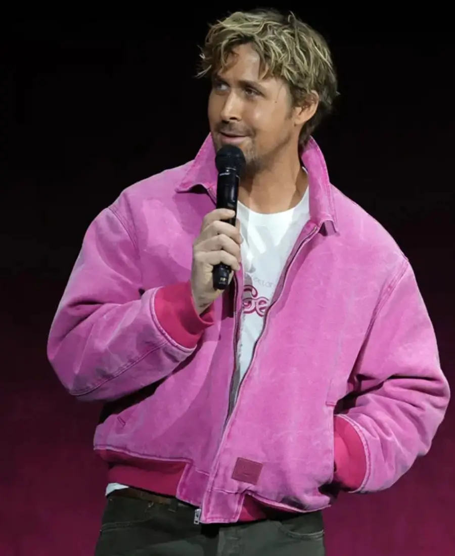 CinemaCon Barbie Promo Event Ryan Gosling Pink Bomber Jacket